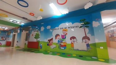 Renovamos y transformamos espacios educativos antiguos con vinilos decorativos de gran impacto visual, PVC impreso, fieltros, madera, etc ideales para pasillos, aulas, entradas o bibliotecas. Una solución práctica y económica para modernizar centros con años de uso, aportando color, calidez y contenido pedagógico al entorno.