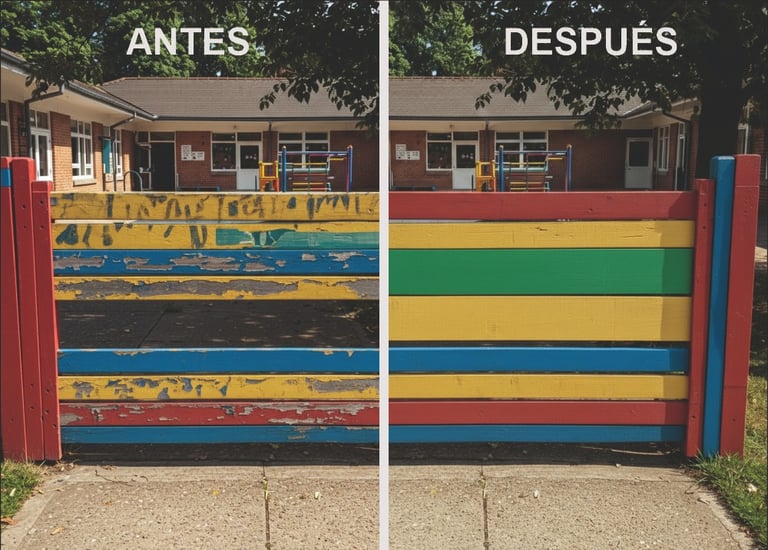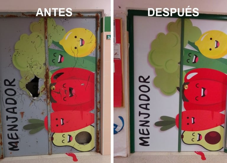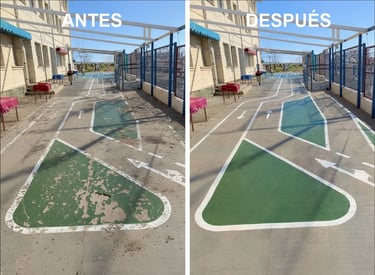 Además, realizamos trabajos de pintura, señalización, instalación de vinilos educativos, reparación y ajuste de pizarras, montaje de mobiliario escolar, instalar césped y revisión de elementos de seguridad. Nuestro objetivo es que el centro siempre esté en perfecto estado para garantizar un entorno seguro, cómodo y funcional para los alumnos y el personal docente.
